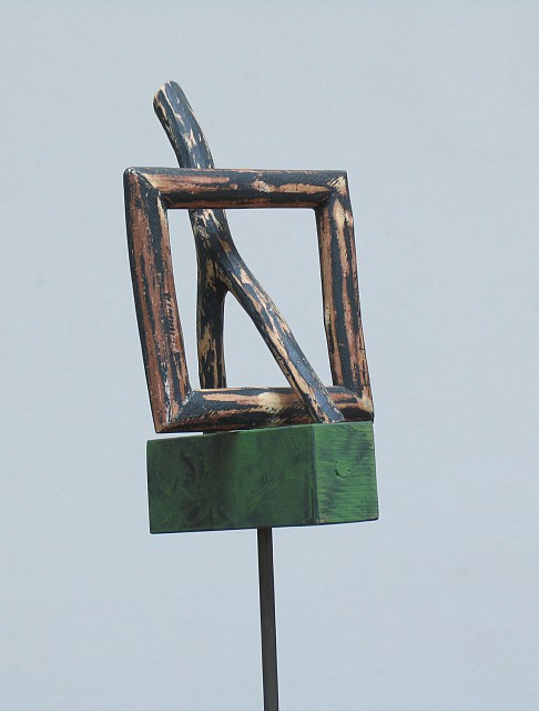 Diverse Hölzer, teilweise bemalt auf Eisenständer ca 140 cm hoch